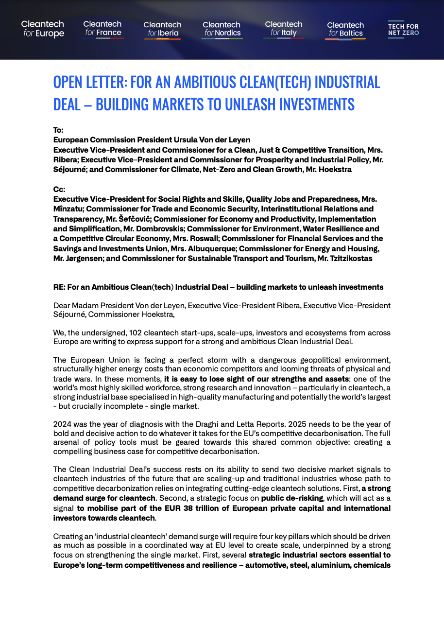📄 Read the full open letter and join us in shaping Europe’s clean industrial future